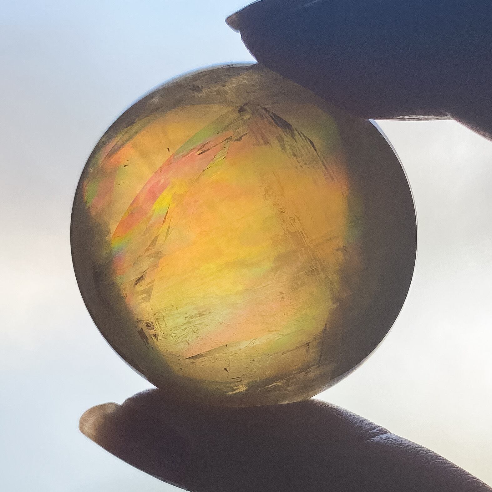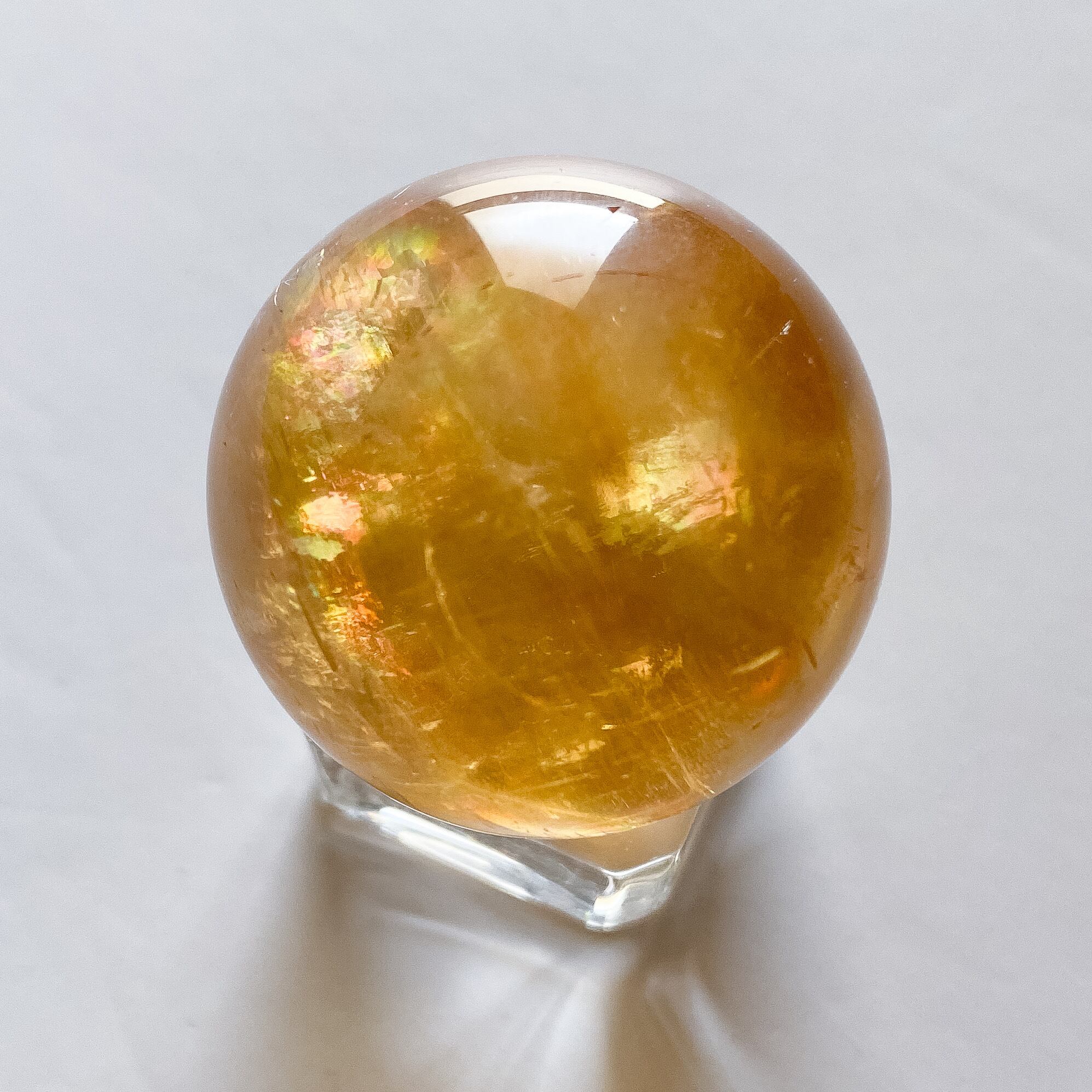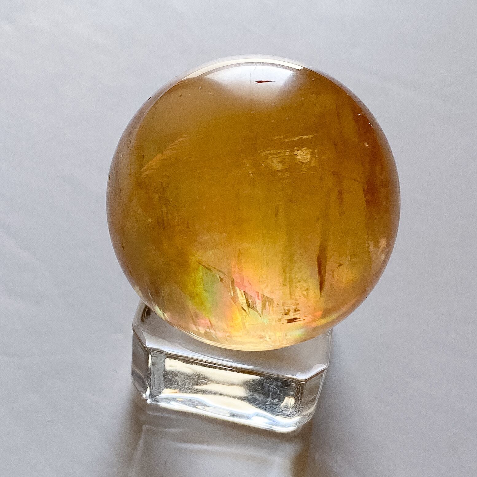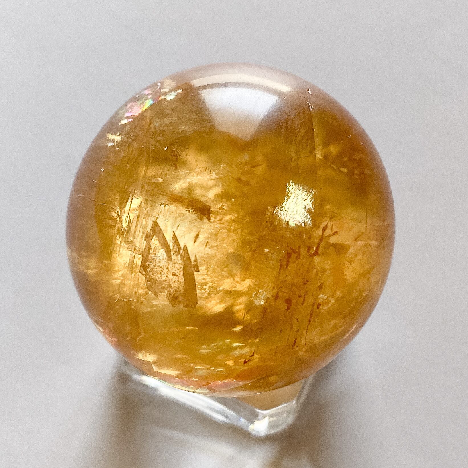 明るく光を通す様子が太陽のようで、見ているとこちらの気分も晴れやかに照らしてくれそうな温かいカラーのスフィアだと思います。