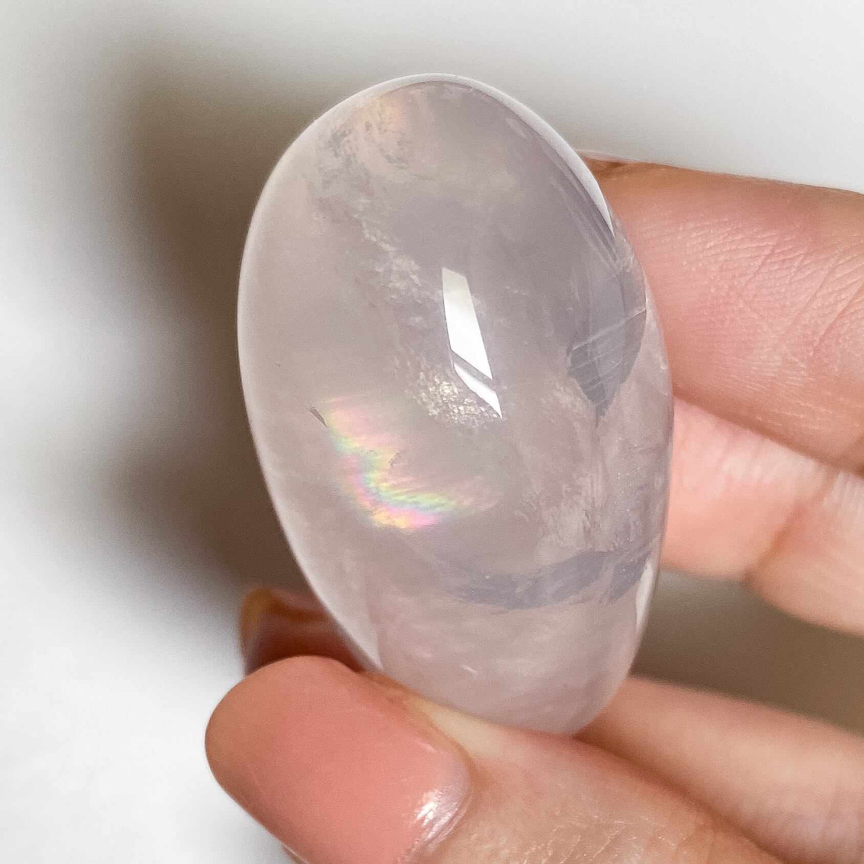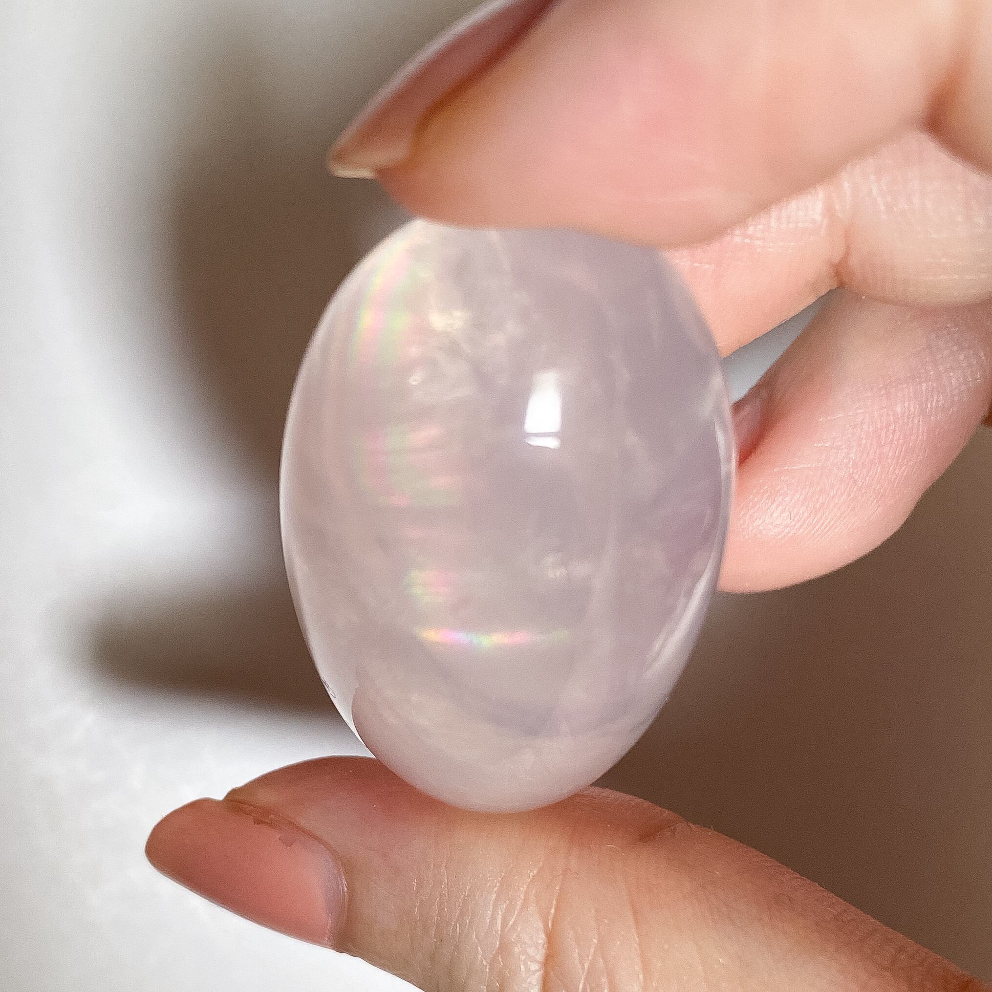 高品質のモザンビーク産スターローズクォーツを使用したタンブルです。研磨、形共に良く表面に目立つ傷もありません。