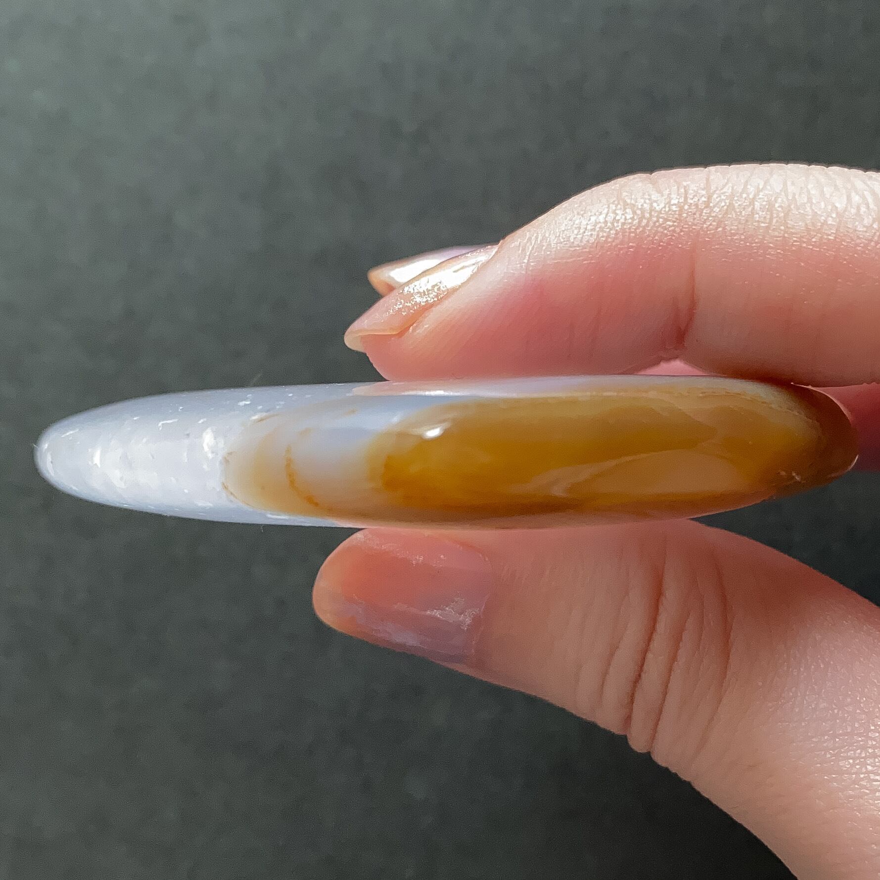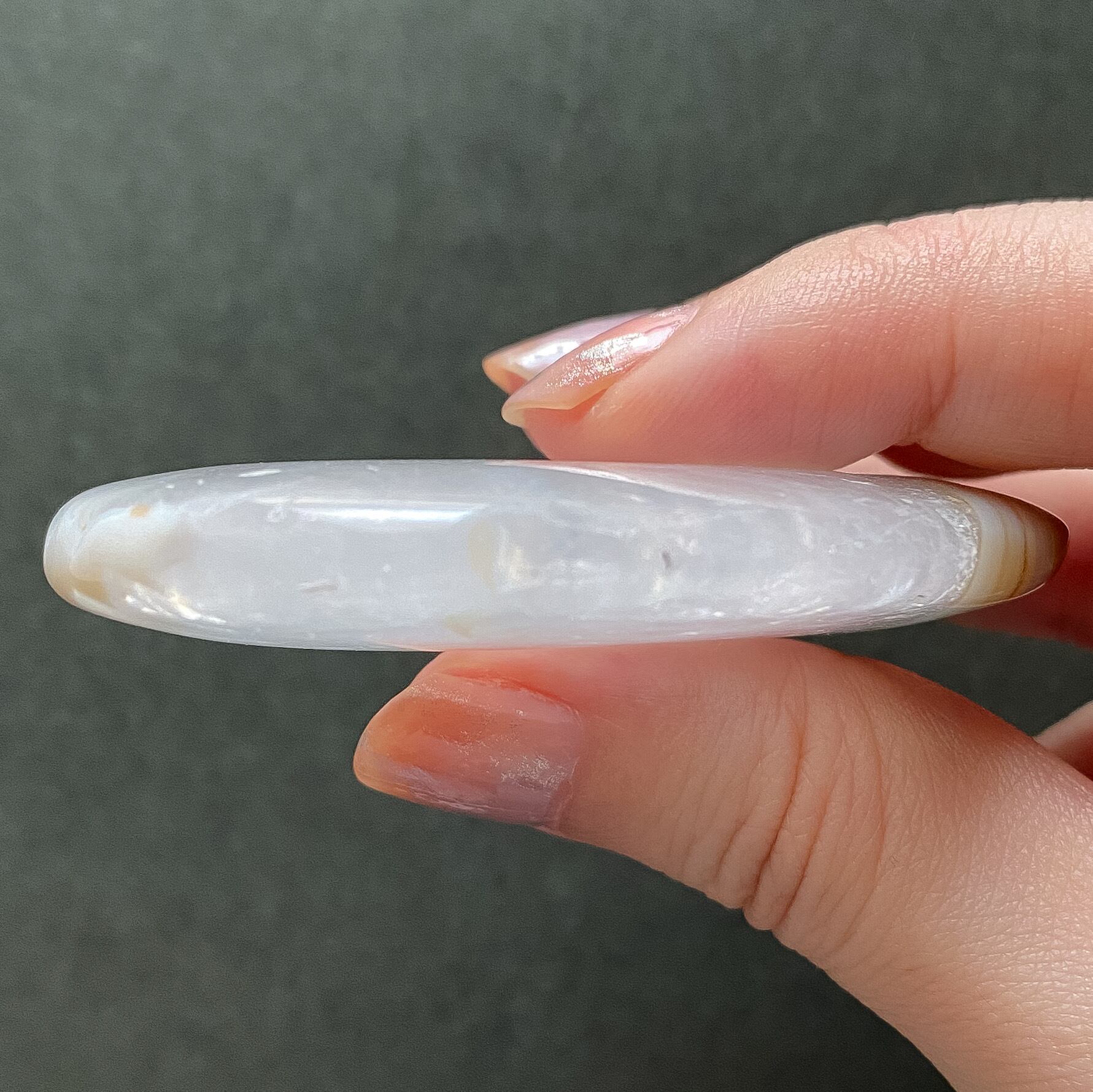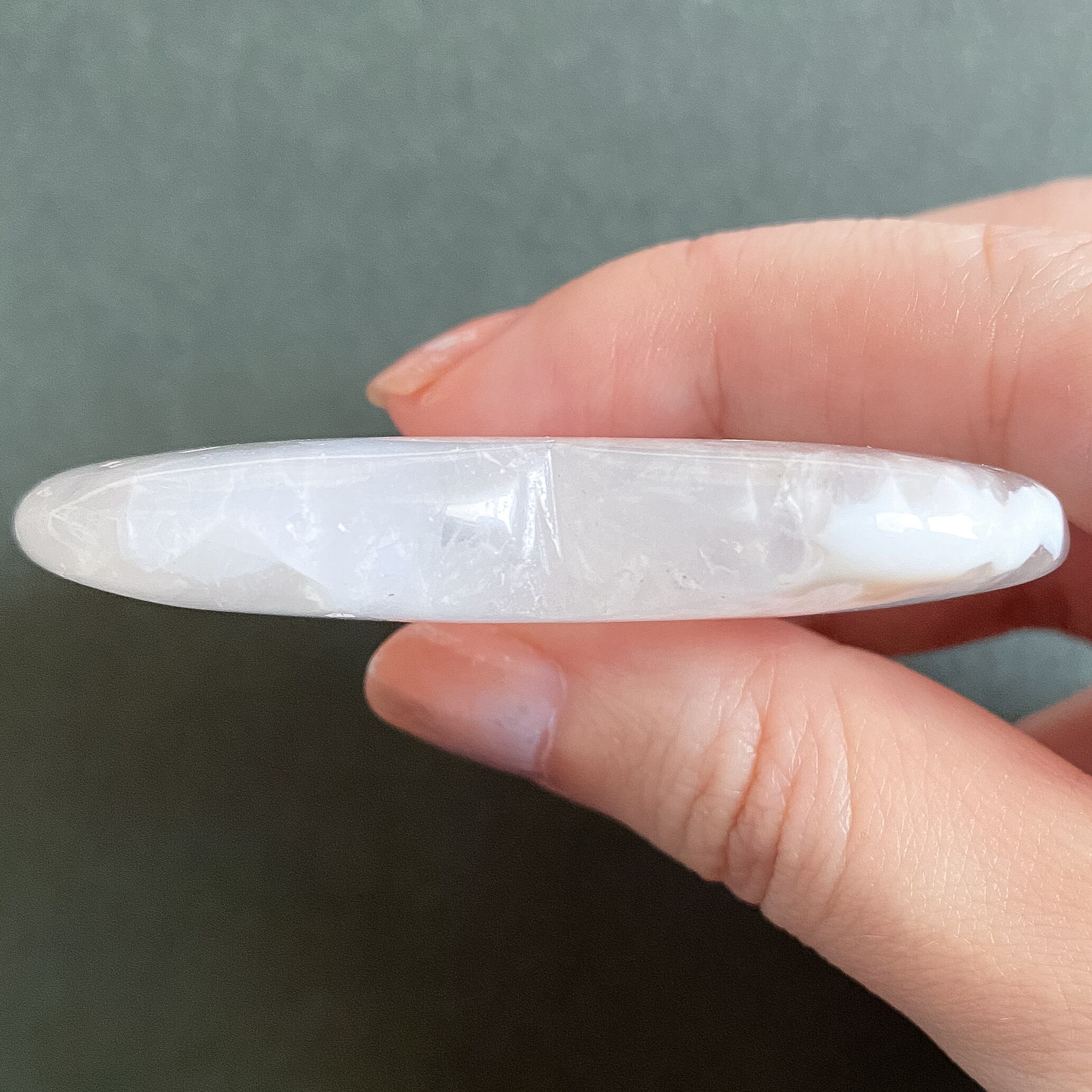 プレート状の研磨ですので光に透かして眺めて頂いたり、お守り石として持ち歩かれる場合もポケットやポーチなどに入れやすい形状だと思います。