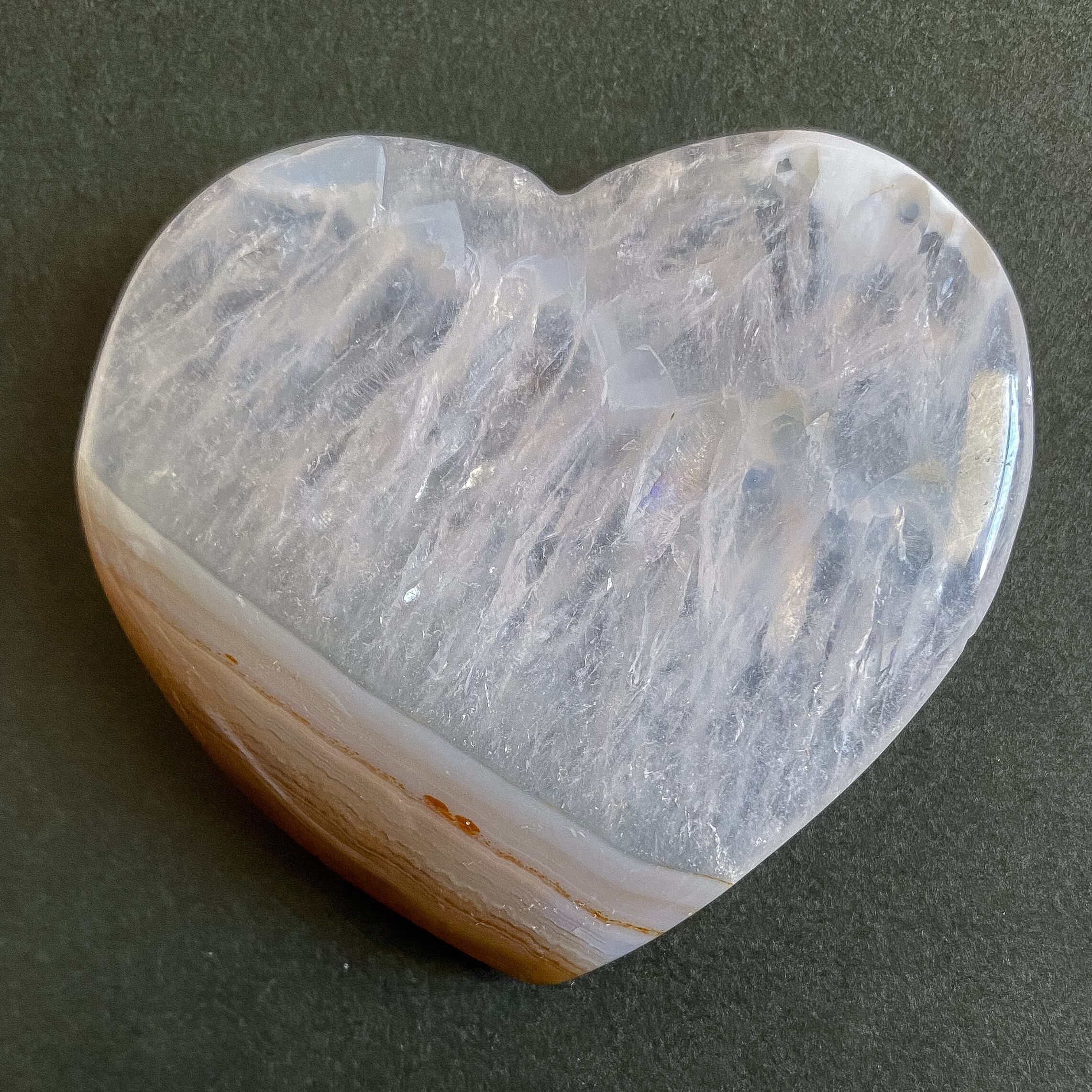 クォーツ結晶の部分がメインとなる瑪瑙のハートシェイプです。