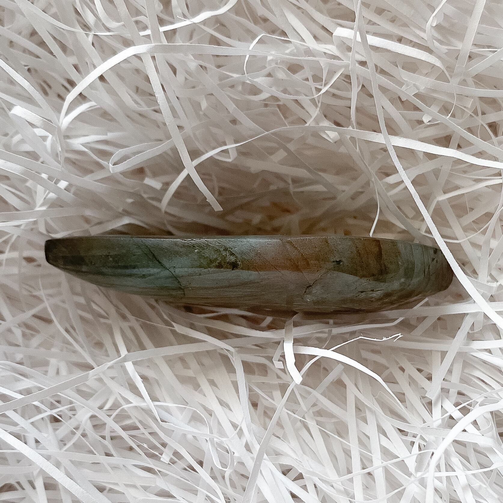 ラブラドライトはそのミステリアスなシラーの揺らぎ方からか潜在意識に影響を与える石とされ、霊的な能力や直感力、芸術的才能を伸ばす手助けをする石とされます。引き寄せの力もあると言われ、人や物との縁を結ぶのも得意だとされています。