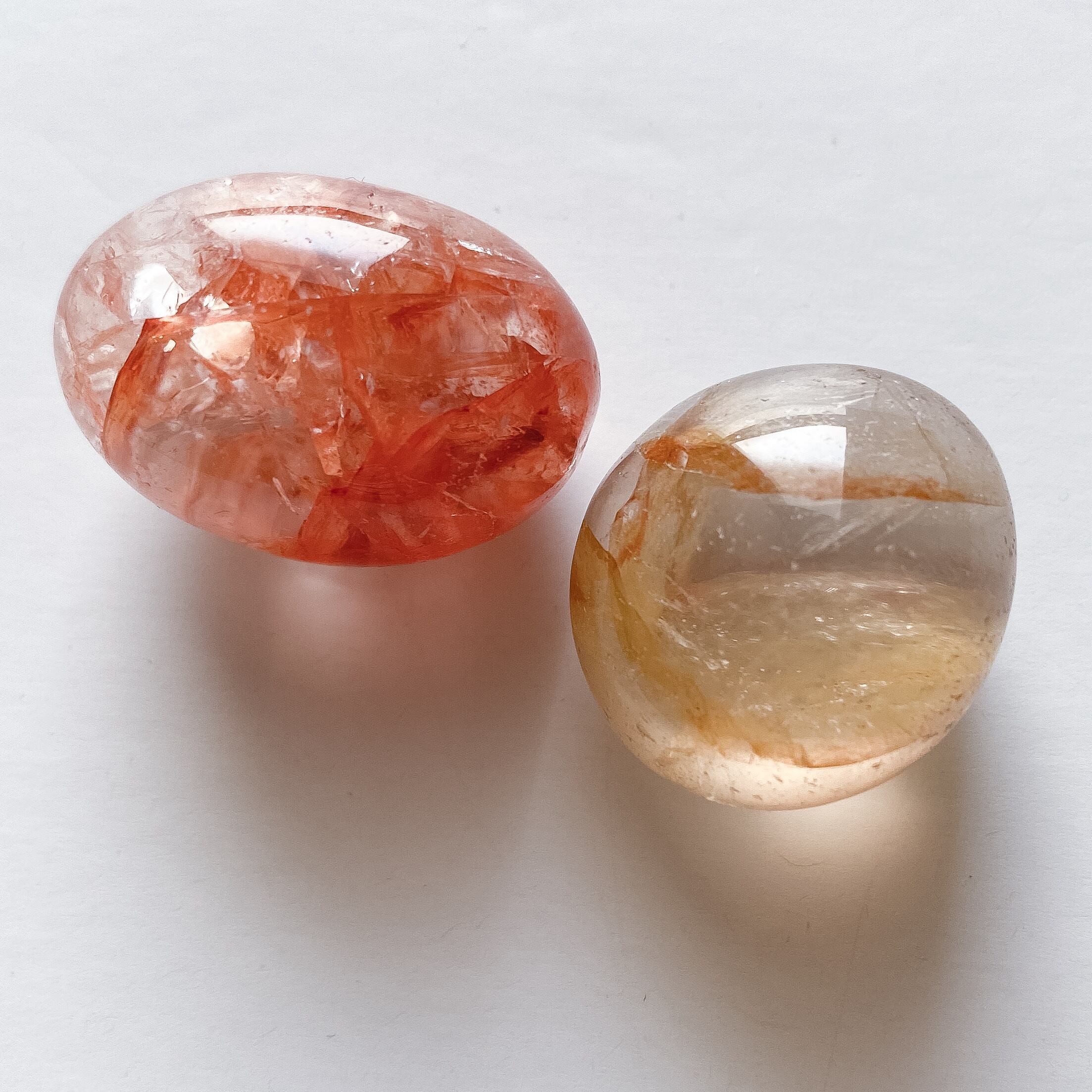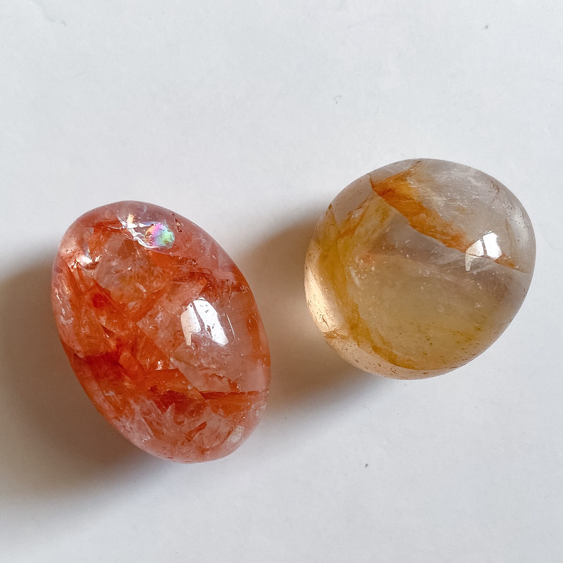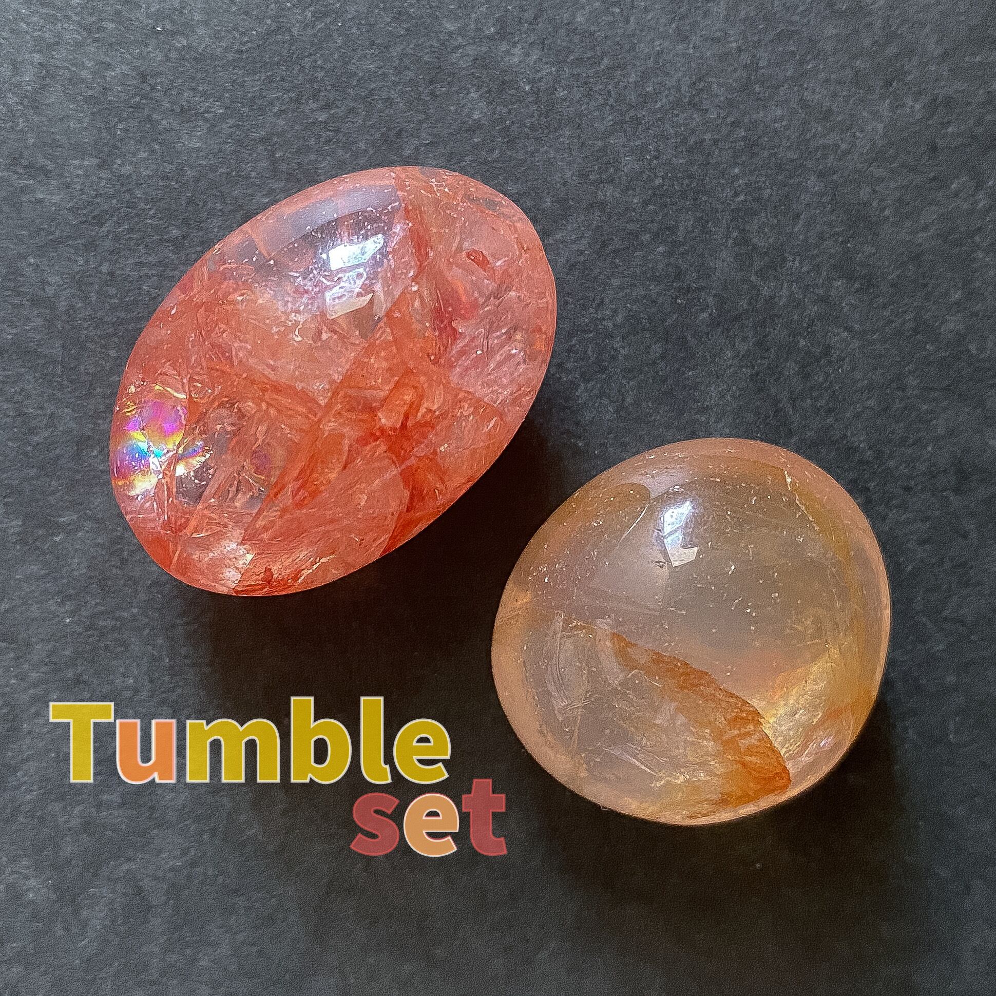 マダガスカル産、ゴールデンヒーラーとヘマタイトインクォーツの小さなタンブルのセットです