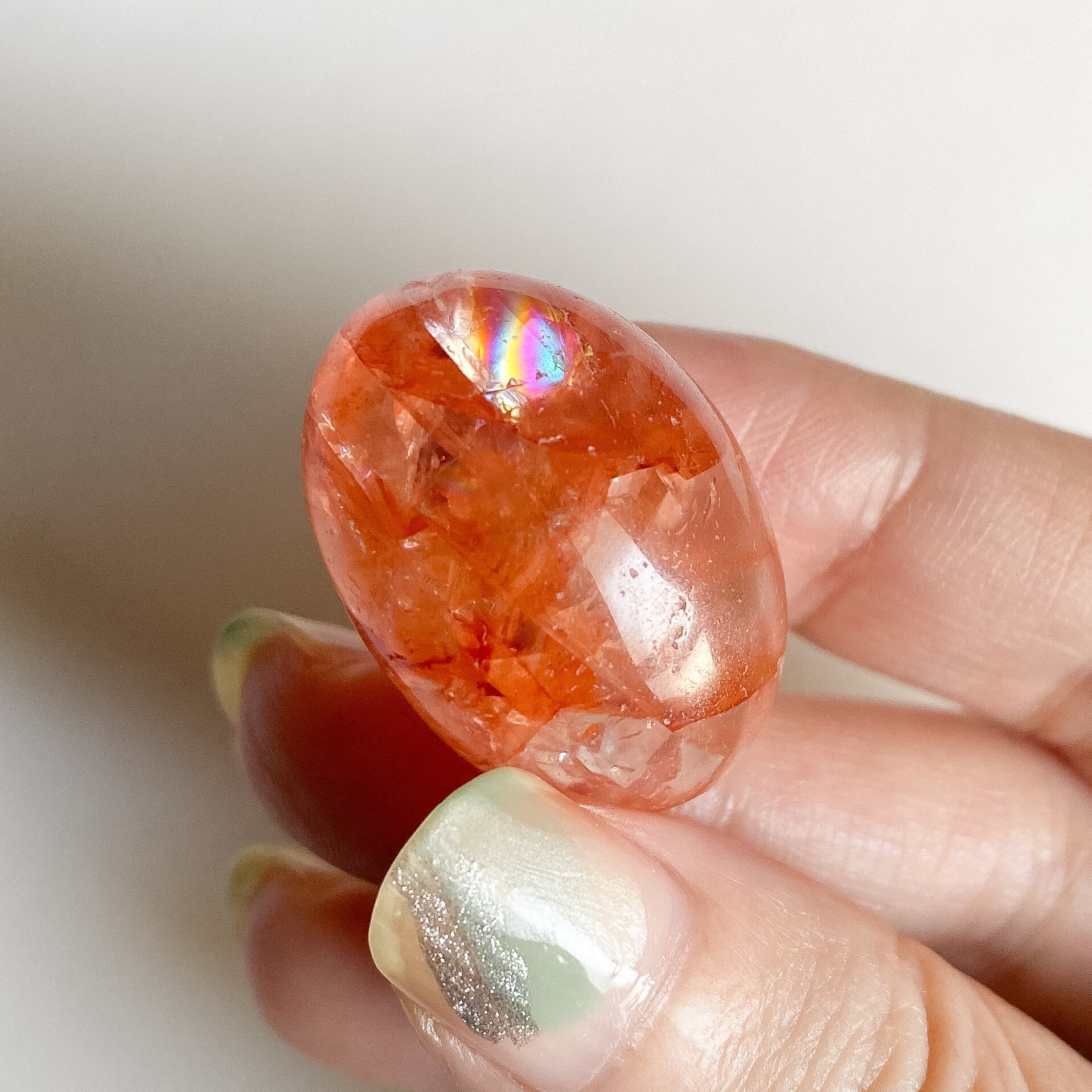 ヘマタイトインクォーツは内部に虹の輝きが見られるものを選びました。