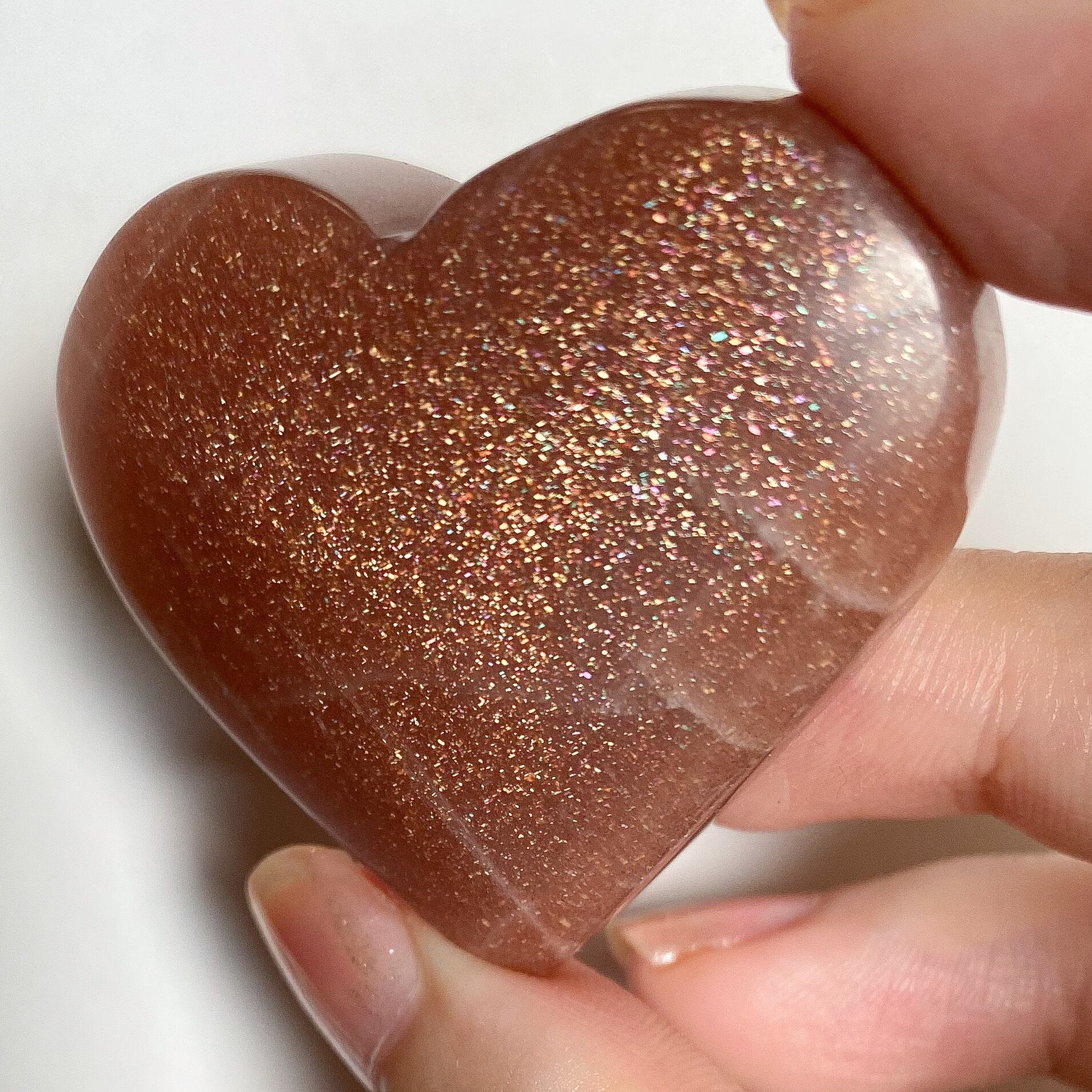 アメリカ産オレンジサンムーンストーンのハートシェイプです。
