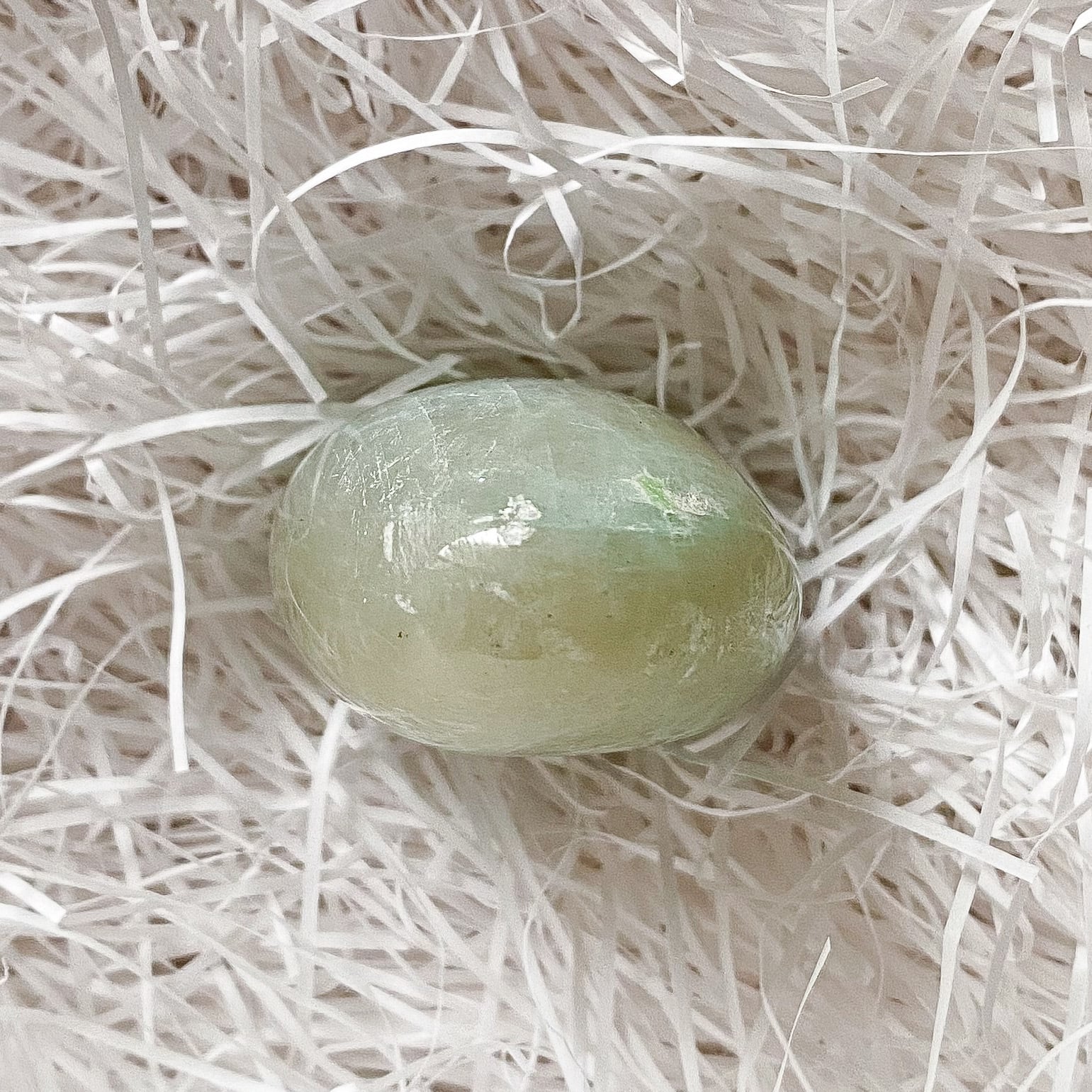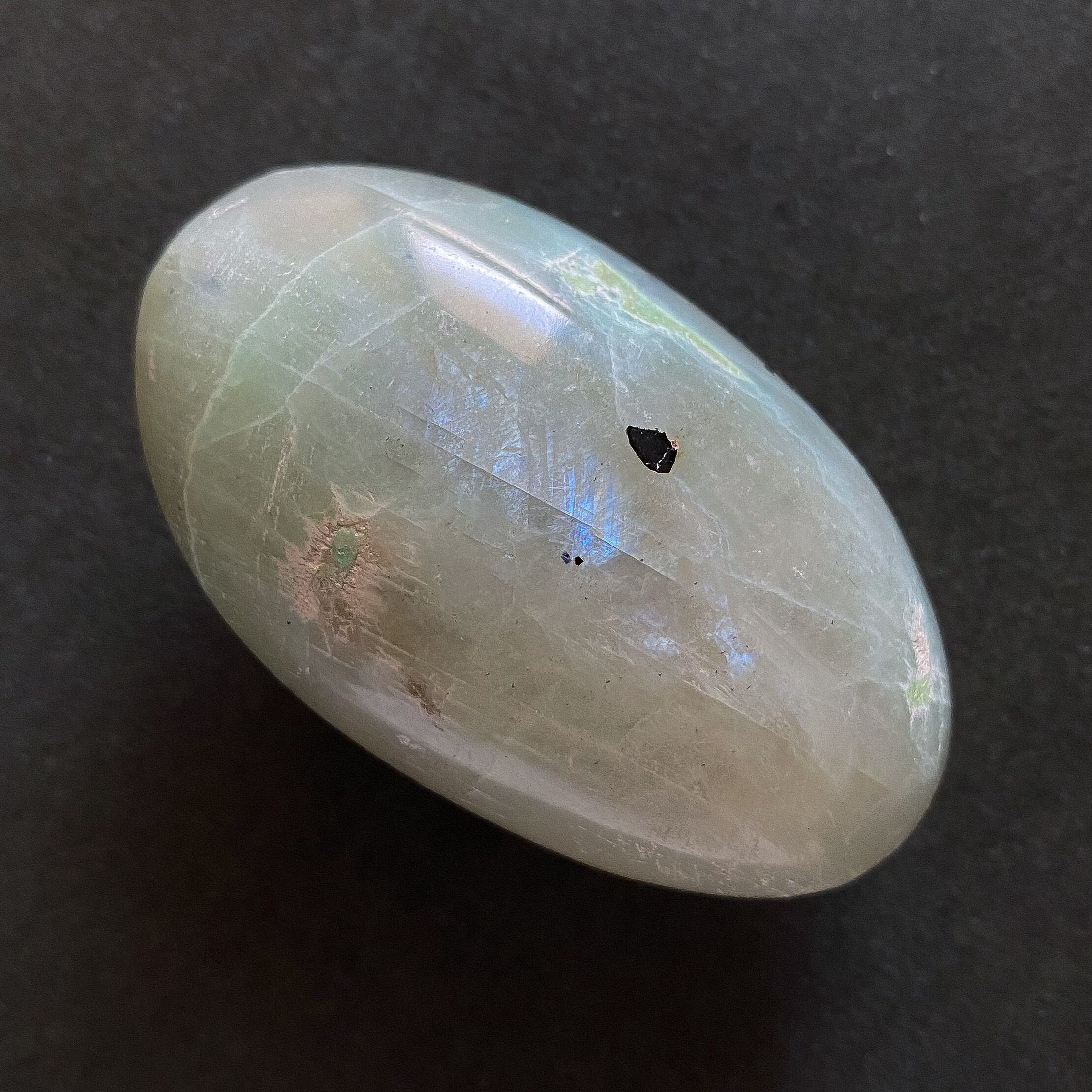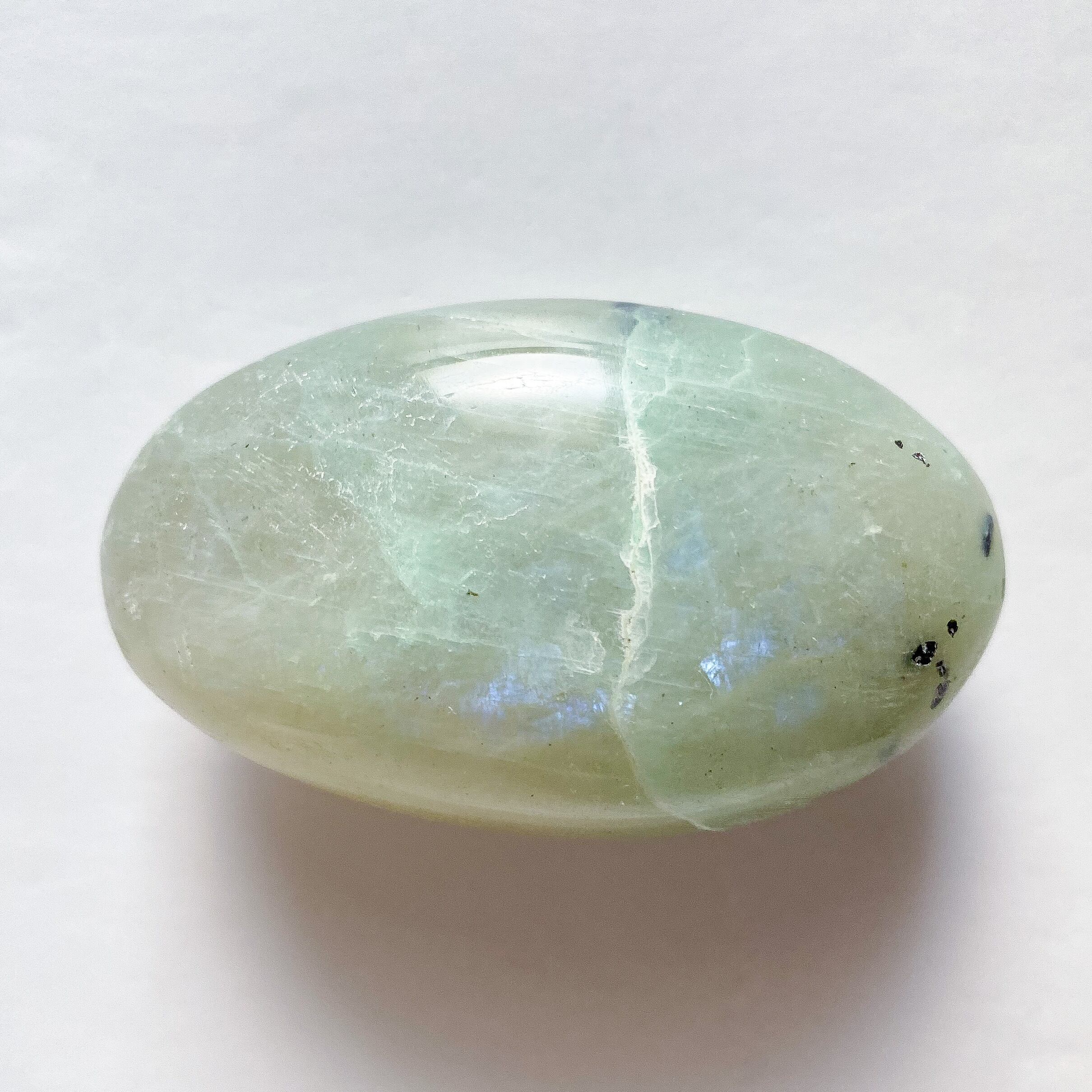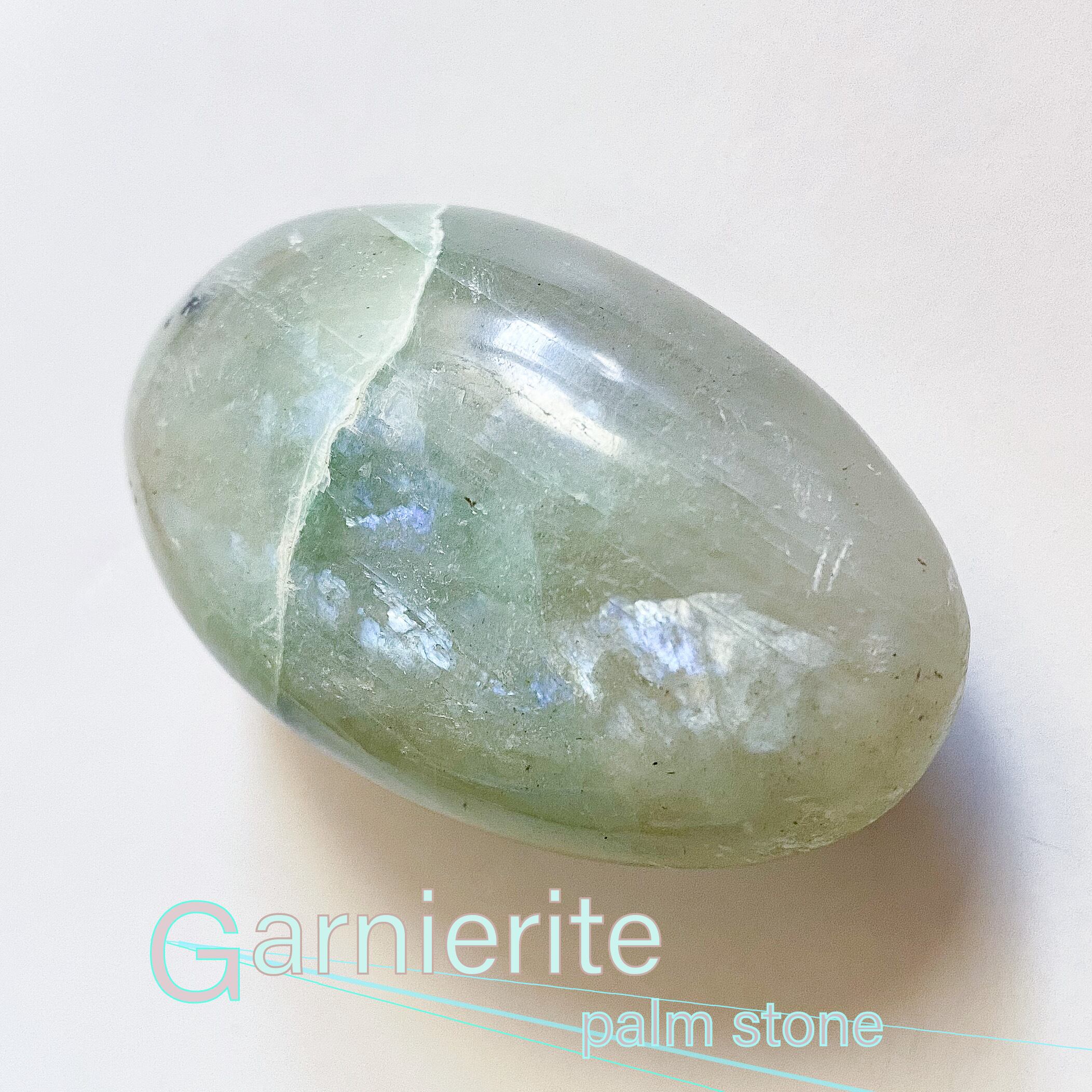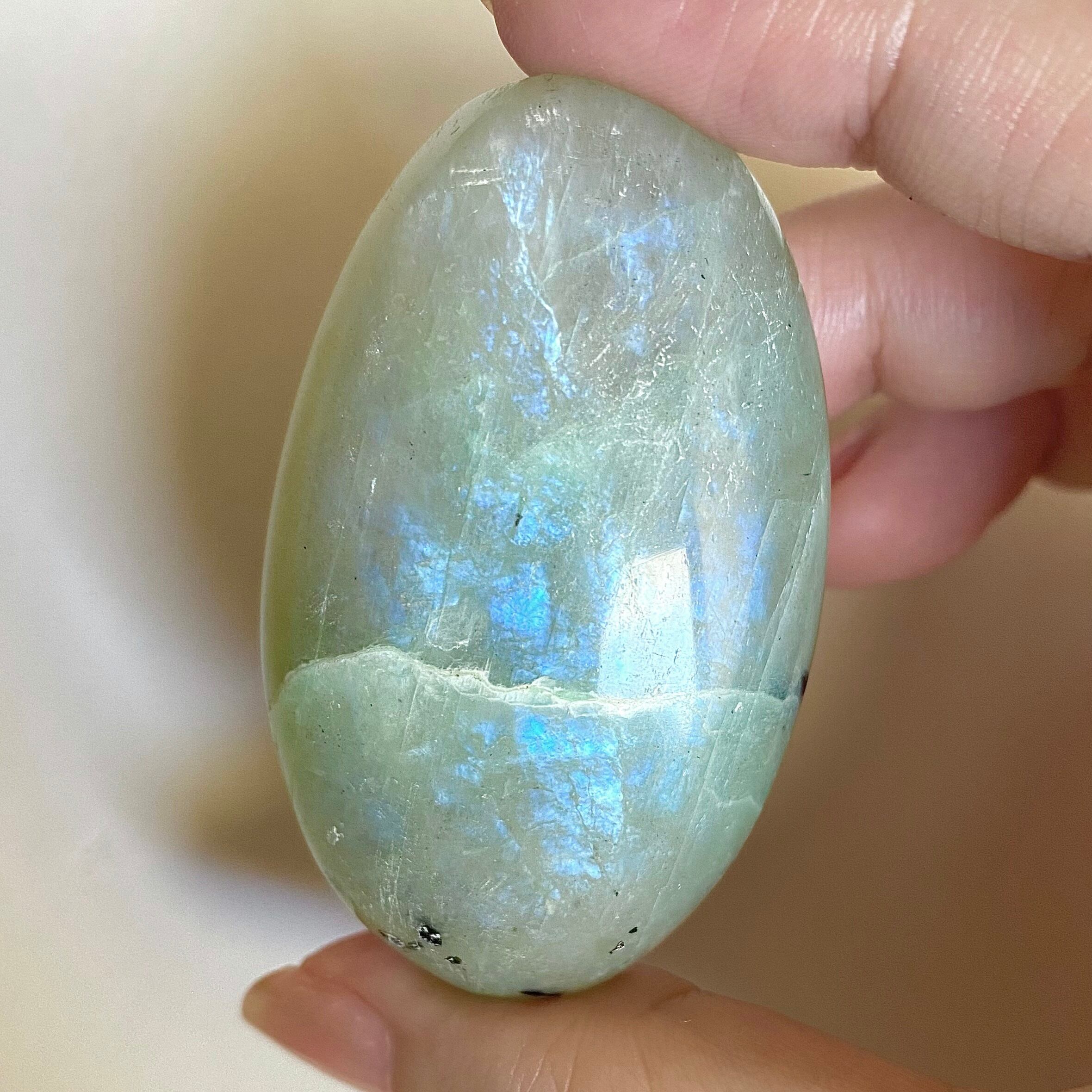 シラーの見える角度も良いですので、手の平の中で地色の淡いグリーンカラーとブルーのシラー、両方をお楽しみ頂けるパームストーンだと思います。