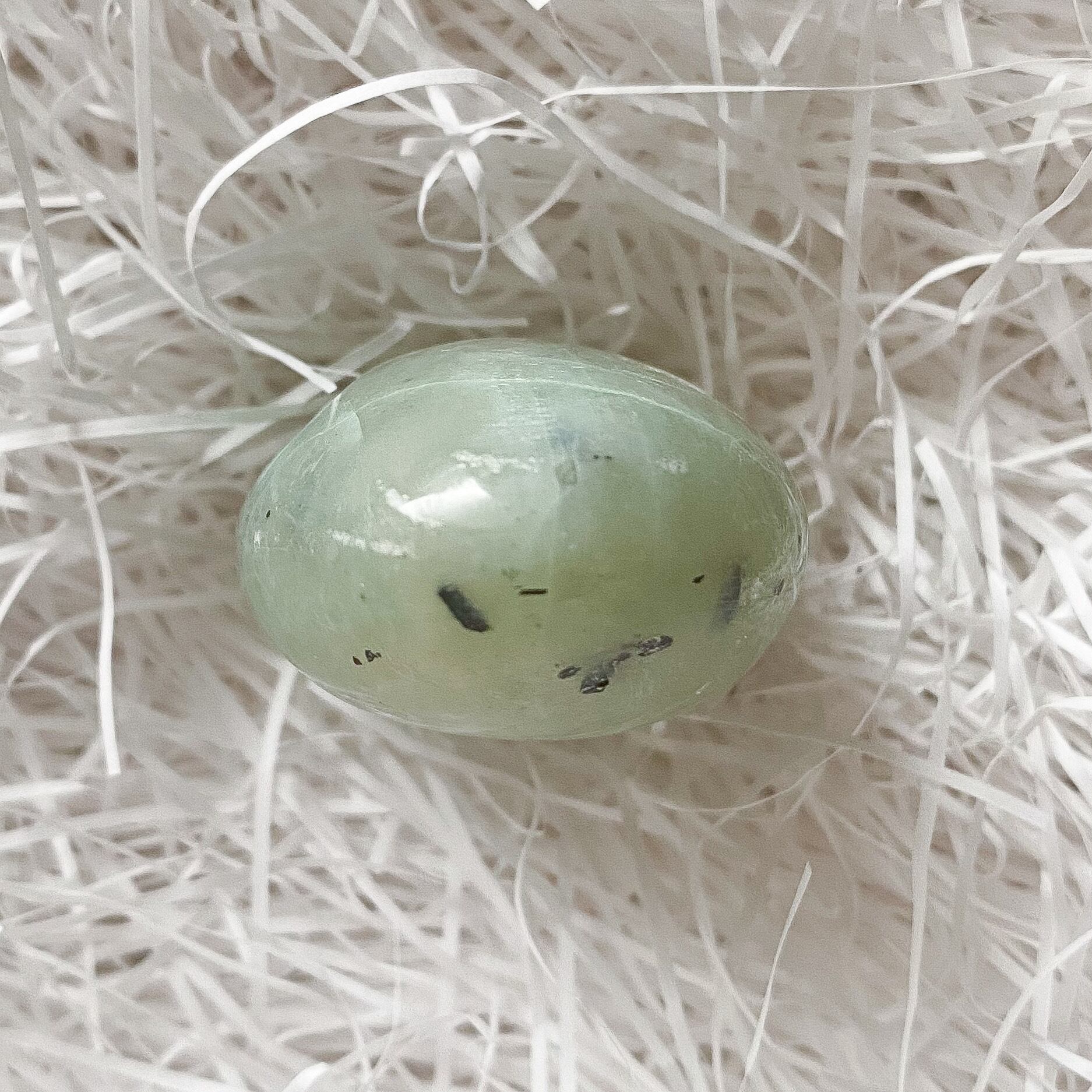 長石類の一種でサーペンティンと珪ニッケル鉱の混合石となります。緑色の発色は珪ニッケル鉱によるものです。