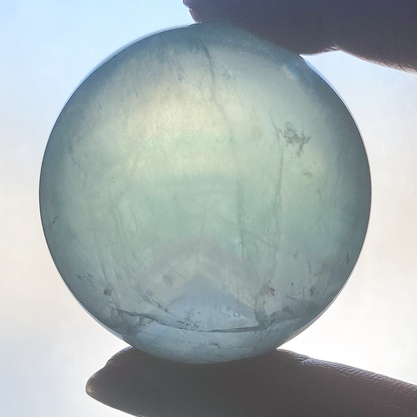 光の入る場所で見ますと淡くフローライトの縞状のカラーグラデーション模様が見られます。