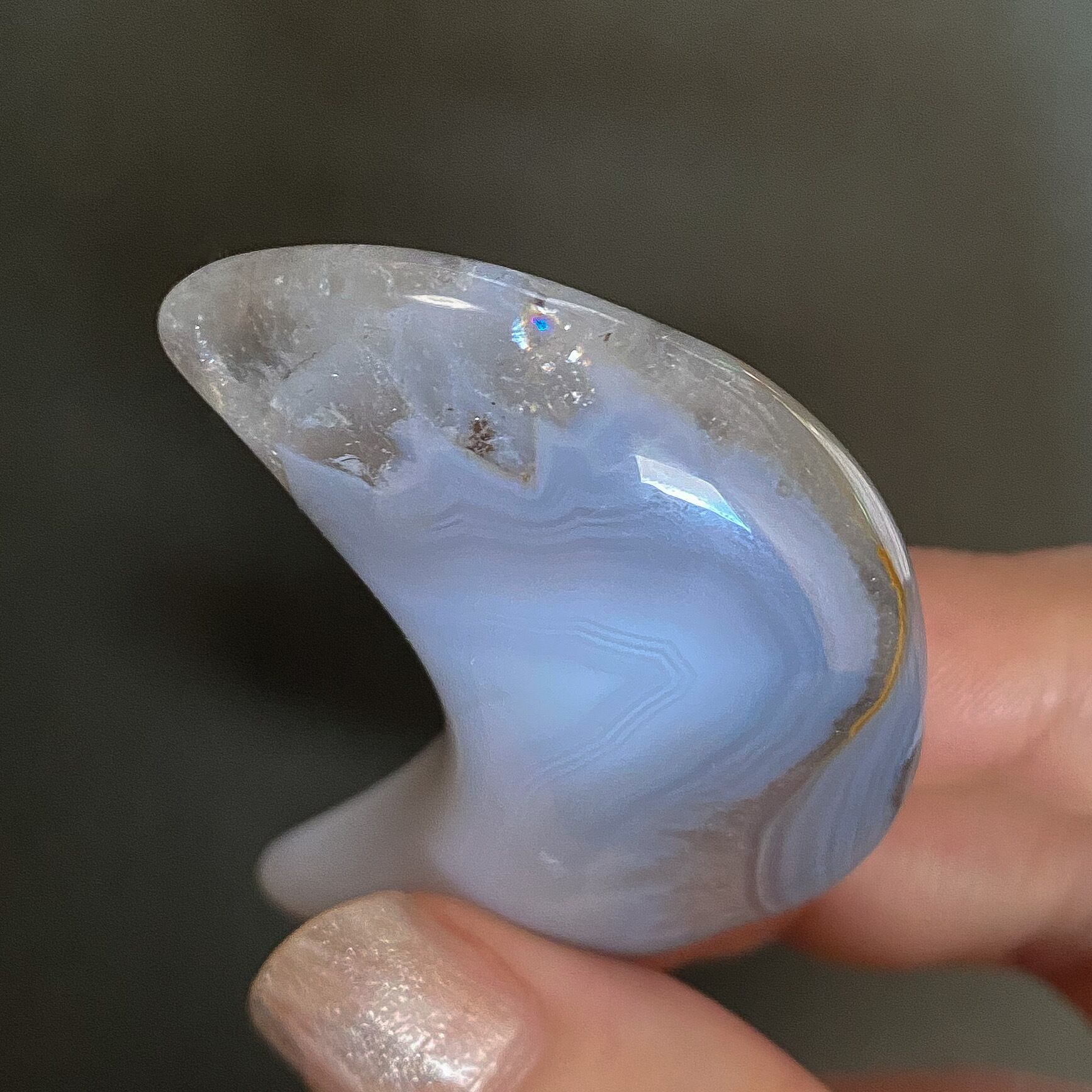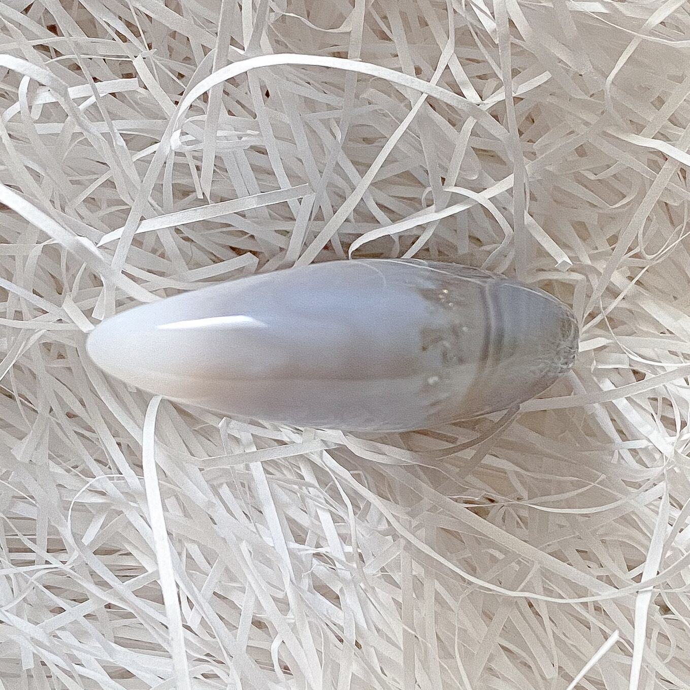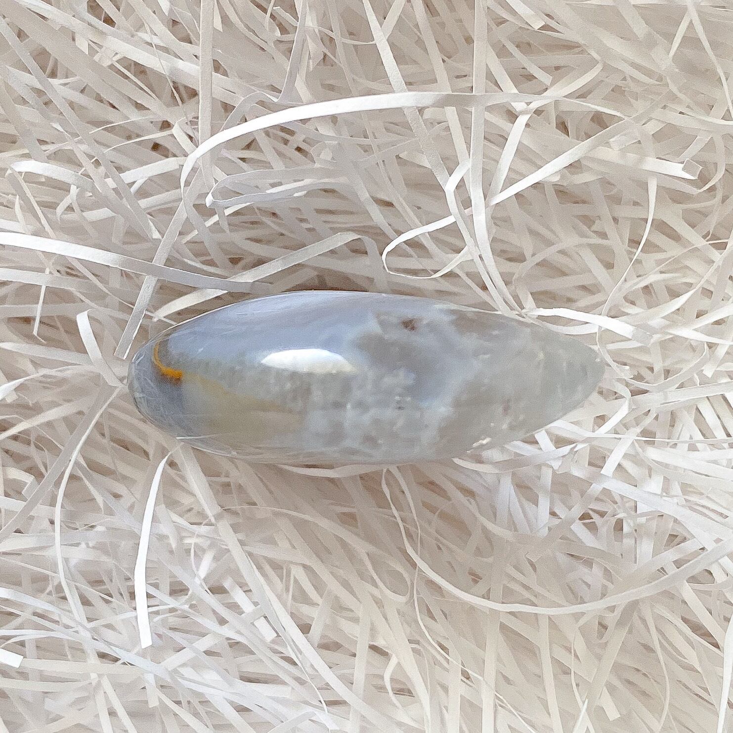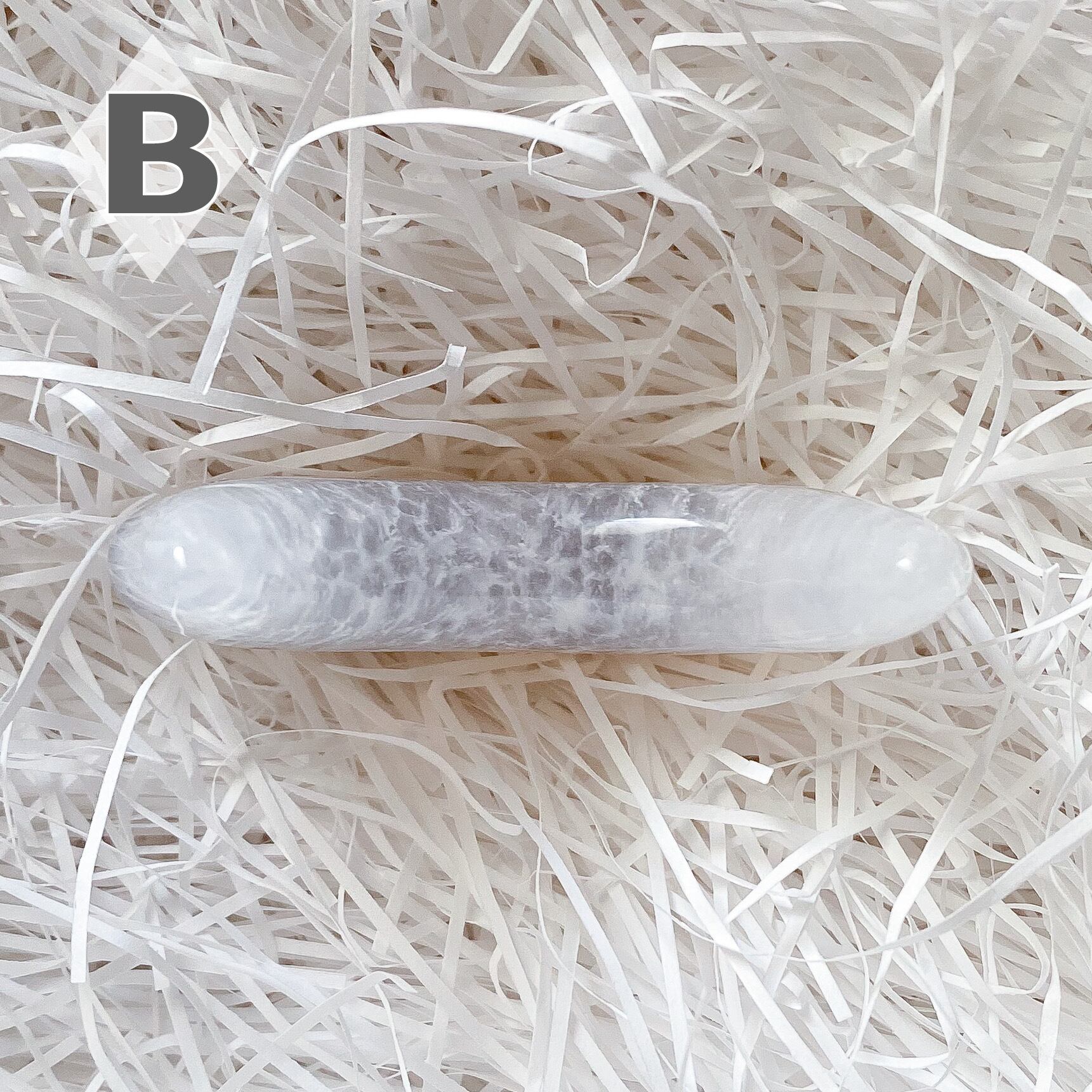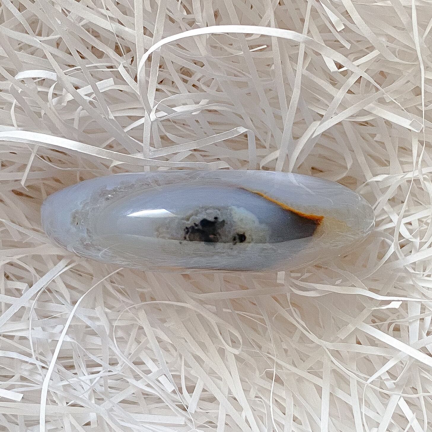 Bもクォーツ部分の入るムーンシェイプです。こちらは瑪瑙部分も含め全体的に半透明で地色は淡いグレーカラーとなります。背中の部分に瑪瑙のお花のような模様が入っているお月様です。