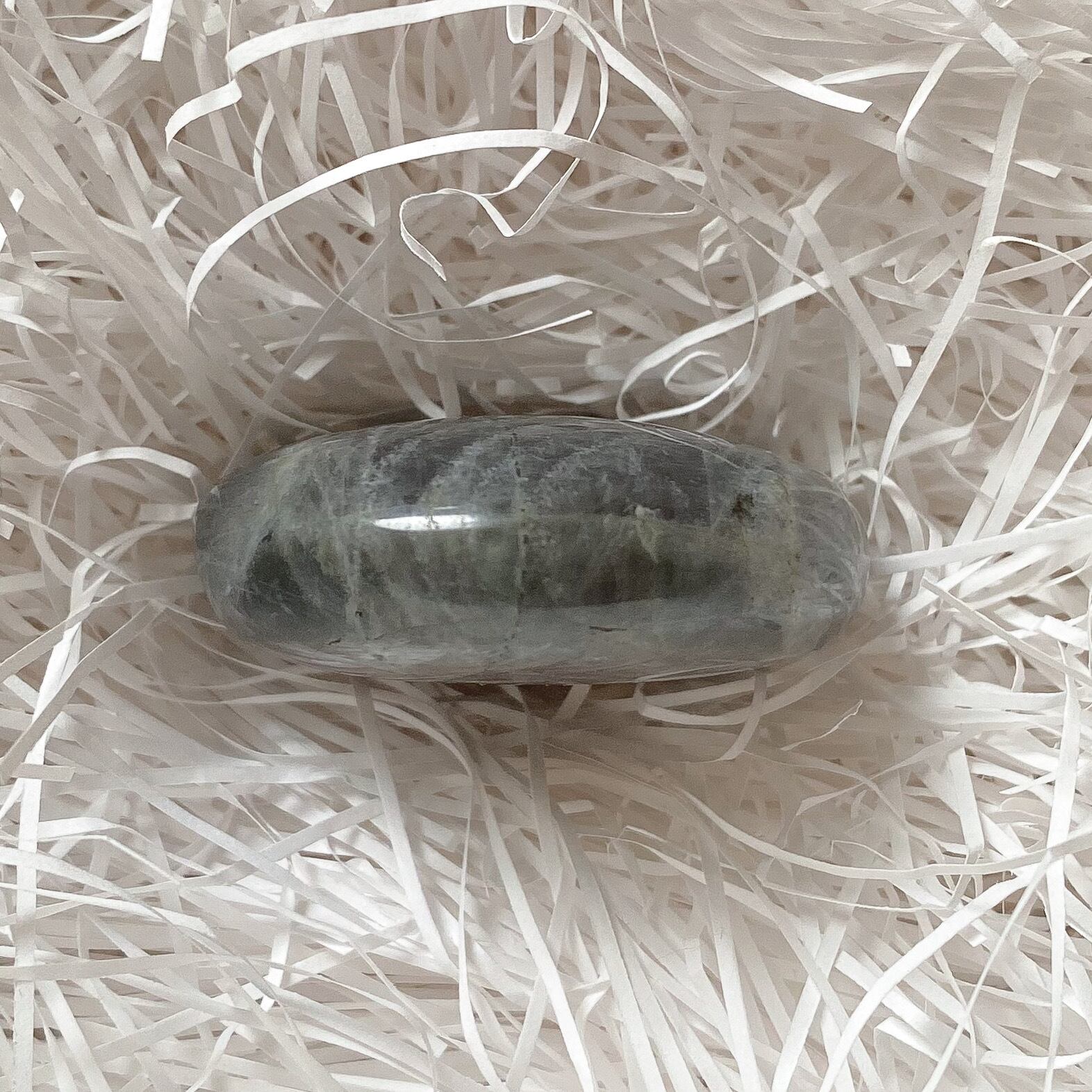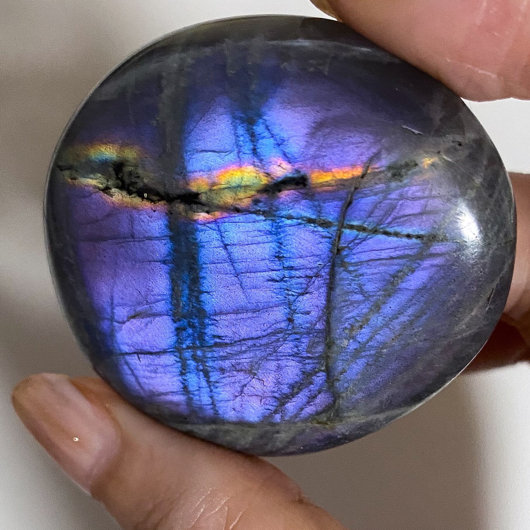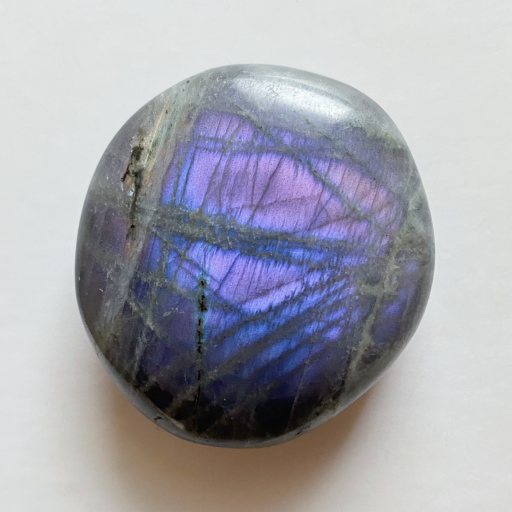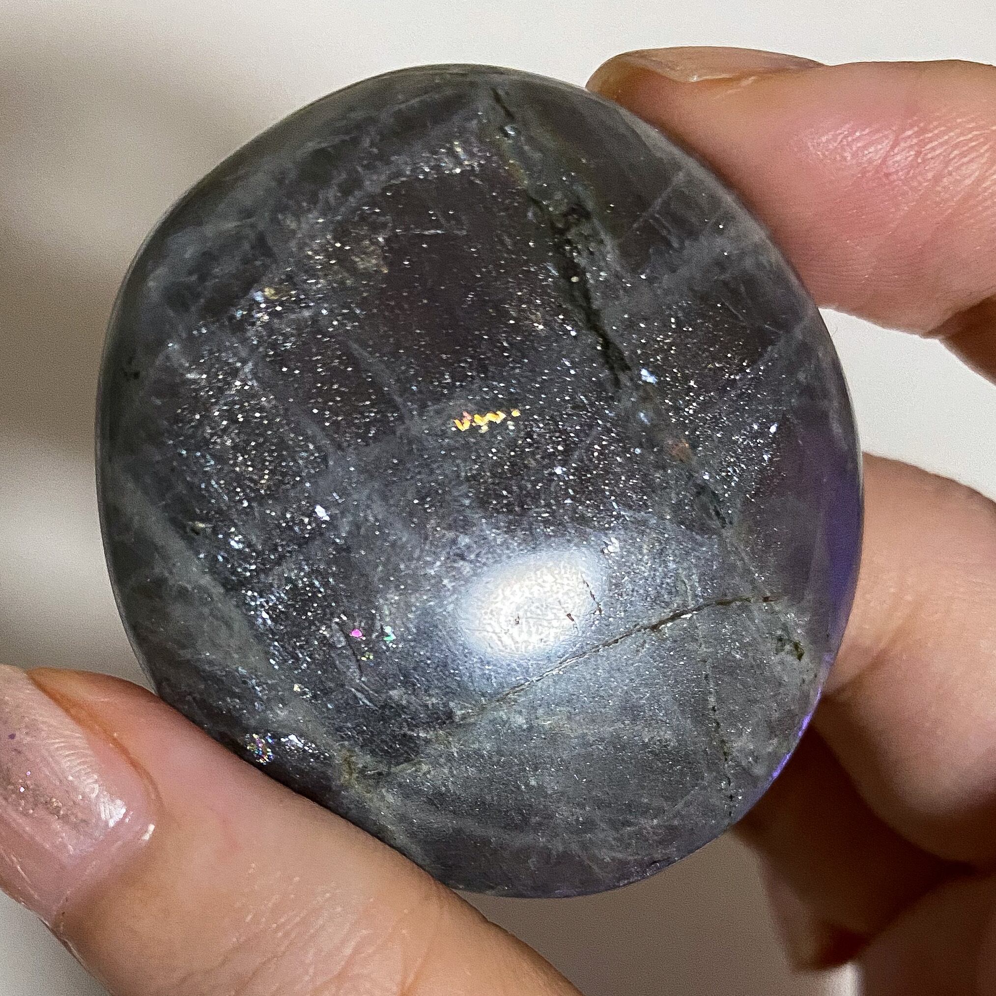 パープルシラーラブラドライトのパームストーンです。