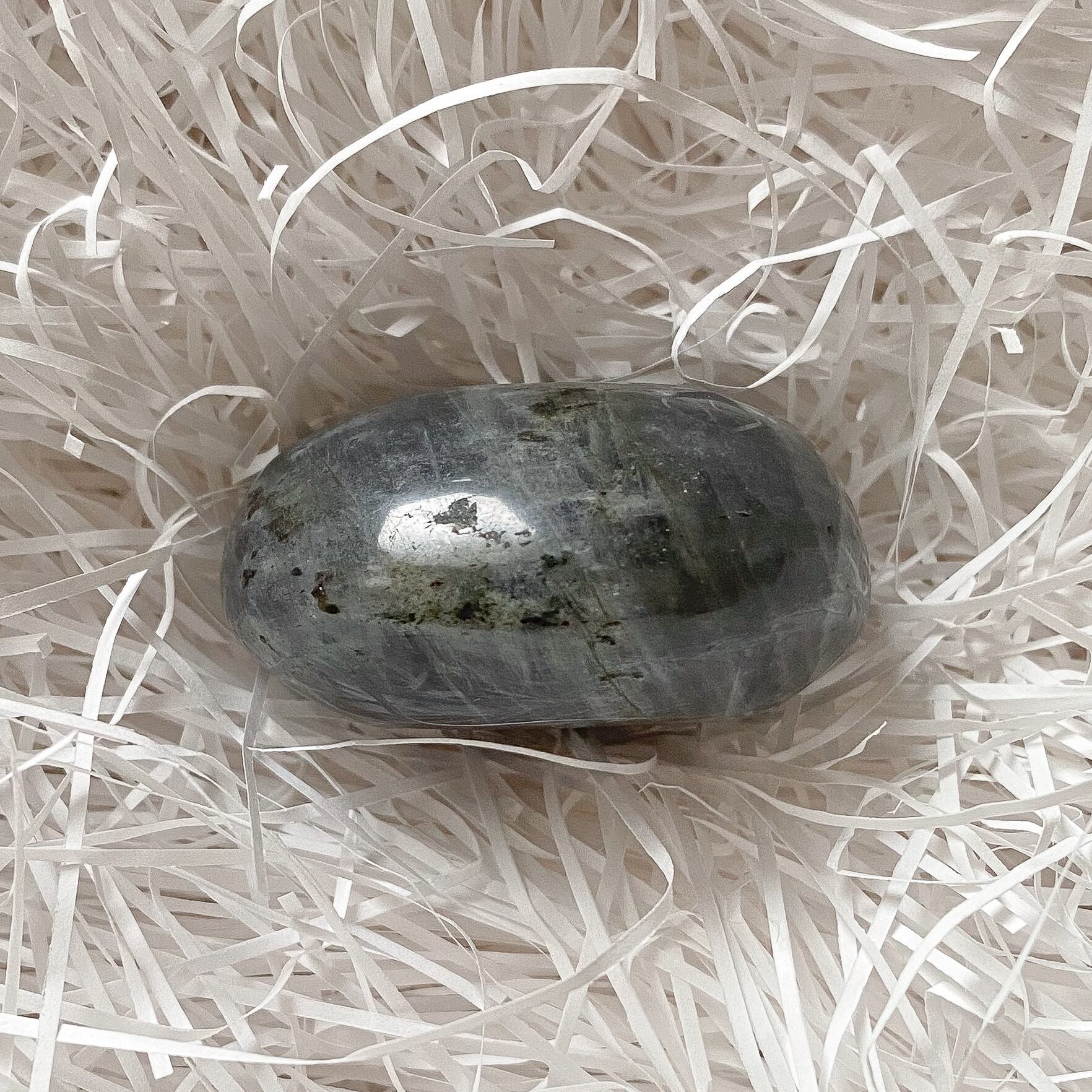 パープルシラー ラブラドライトのパームストーンです。