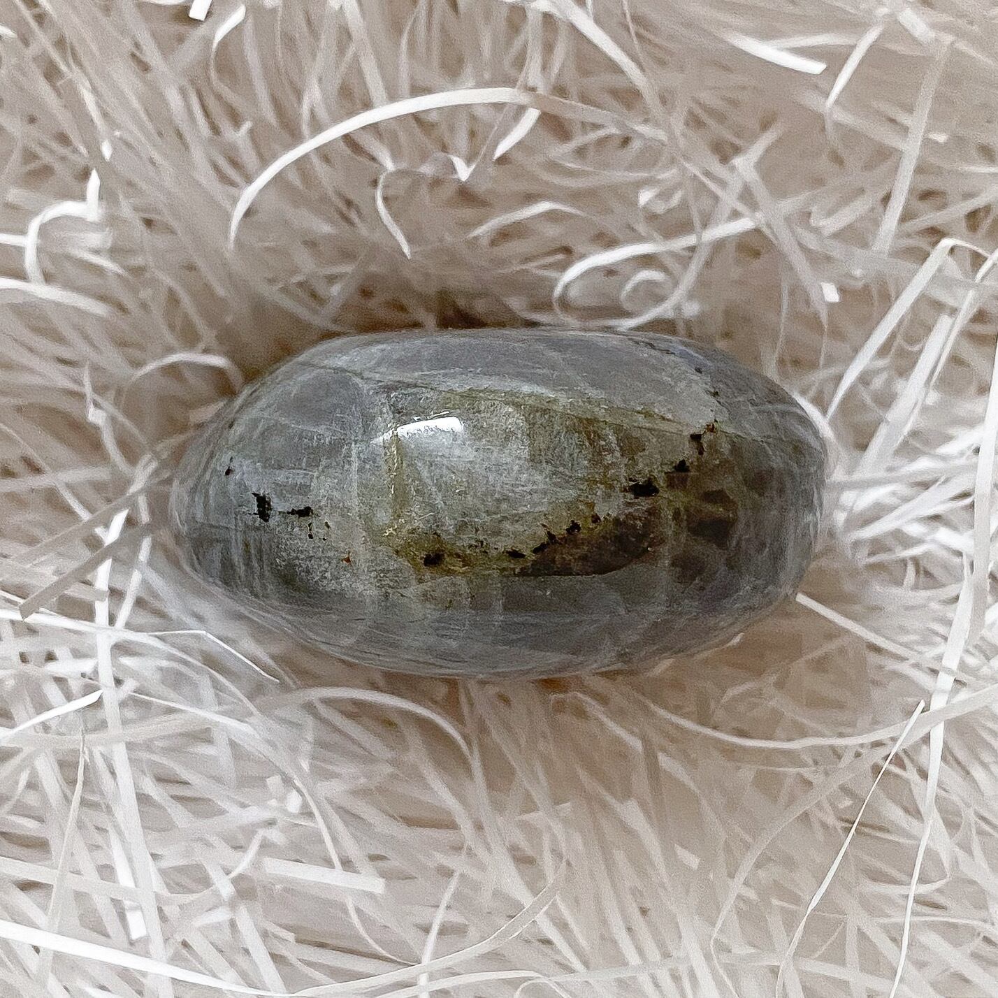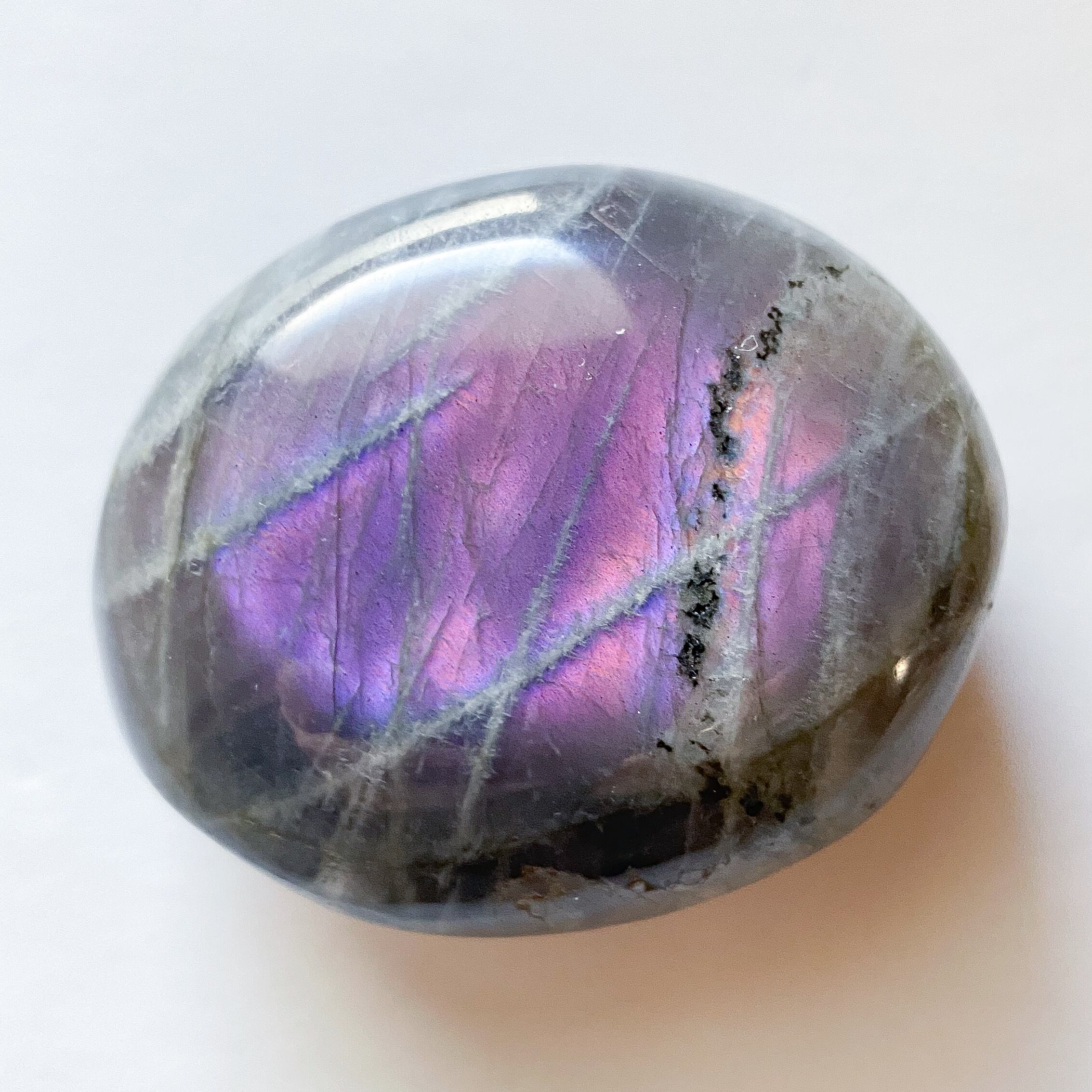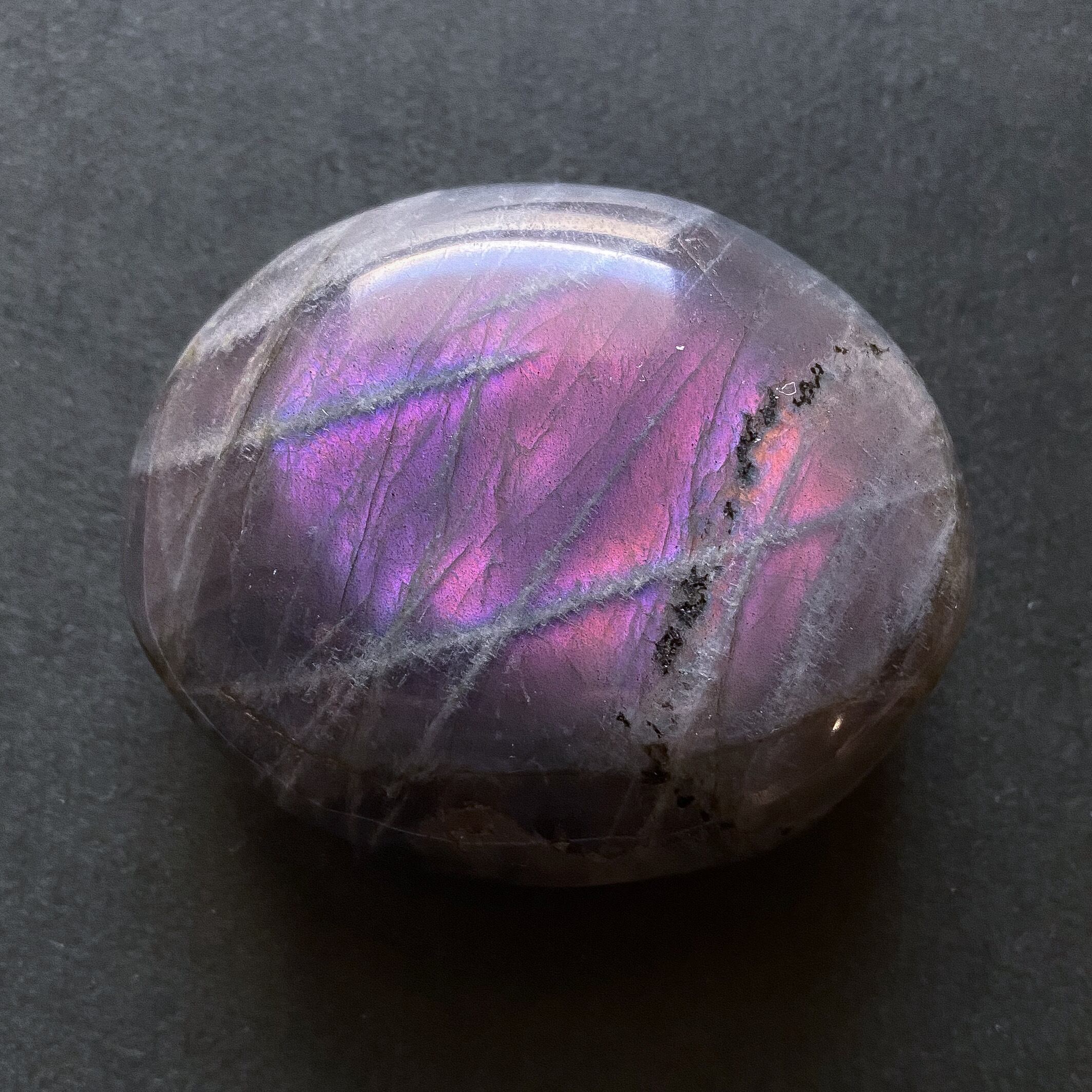 ピンク〜パープルカラーラブラドライトのパームストーンです。
