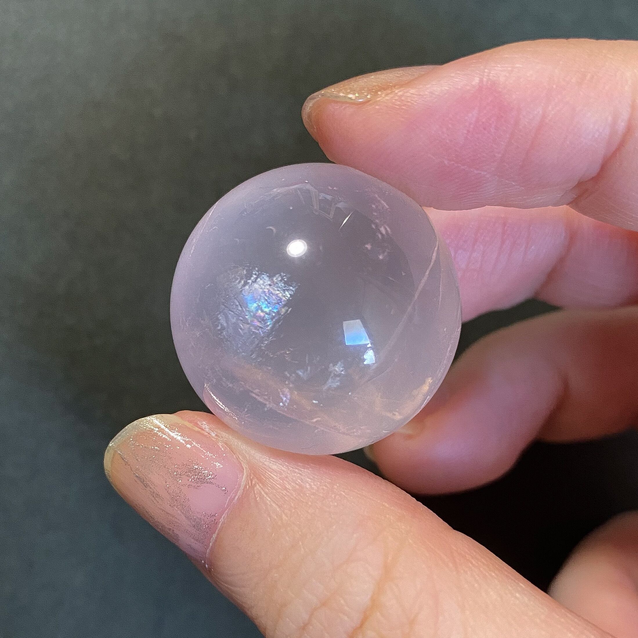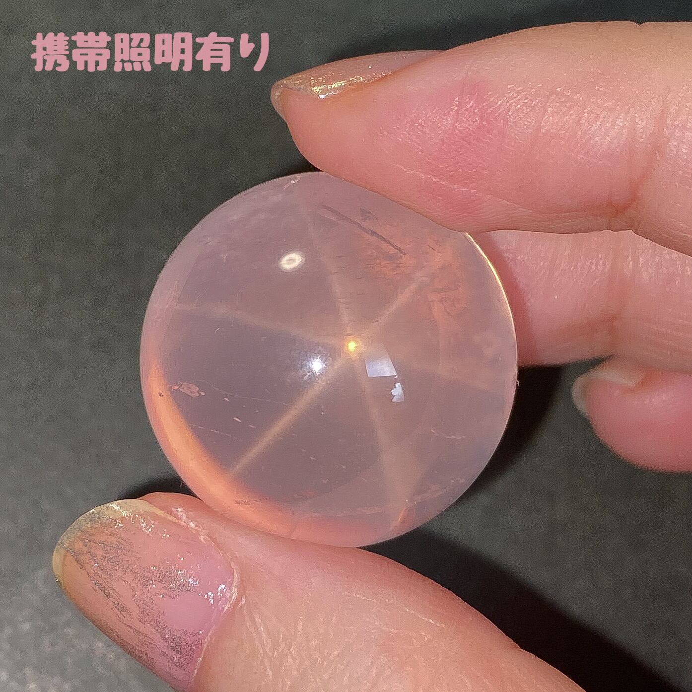 ローズクォーツの柔らかい色味とスター効果をお楽しみ頂けるスフィアだと思います。