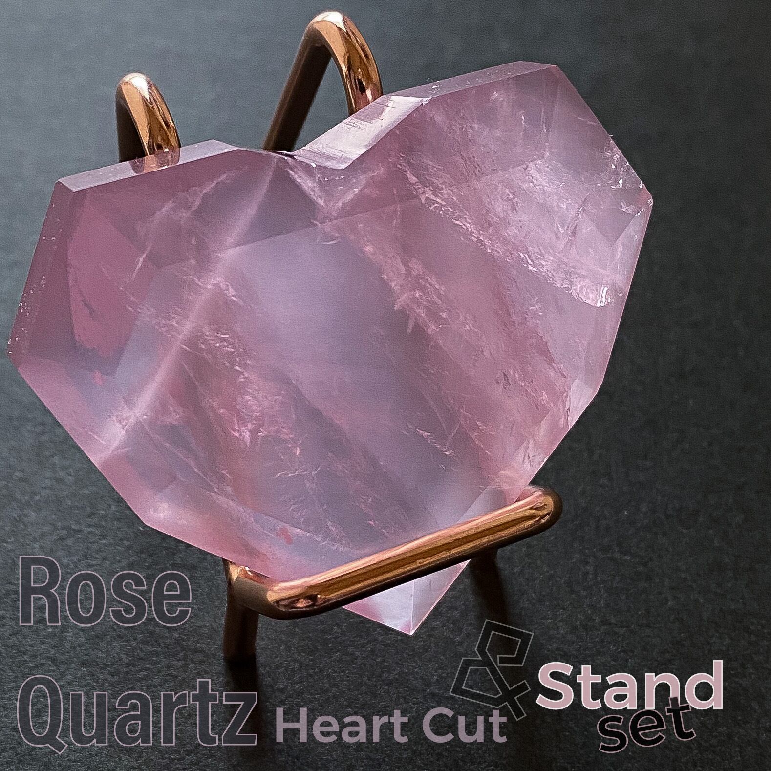 マダガスカル産ローズクォーツのカッティングハートとスタンドのセットです。